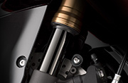 KYB製リヤショックアブソーバーはプログレッシブリンケージを介して動作する。また、スプリングプリロード、コンプレッションダンピング、リバウンドダンピングをフルアジャスタブルとした。ショックアブソーバーピストン径は40㎜、ショックアブソーバーロッド径は14㎜。ストロークは従来モデルと同じ70㎜となっている。